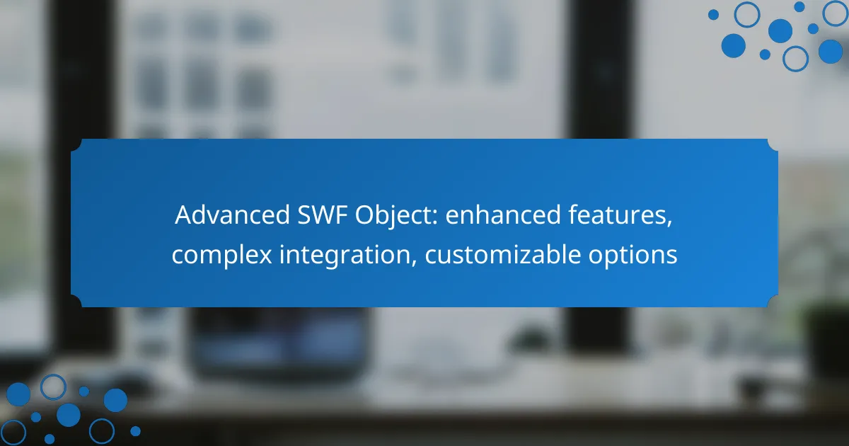 The Advanced SWF Object is designed to elevate functionality and user experience through enhanced features such as dynamic content loading and advanced multimedia support. Its seamless integration capabilities allow developers to connect with existing systems effortlessly, while customizable options enable tailored solutions to meet specific project requirements.