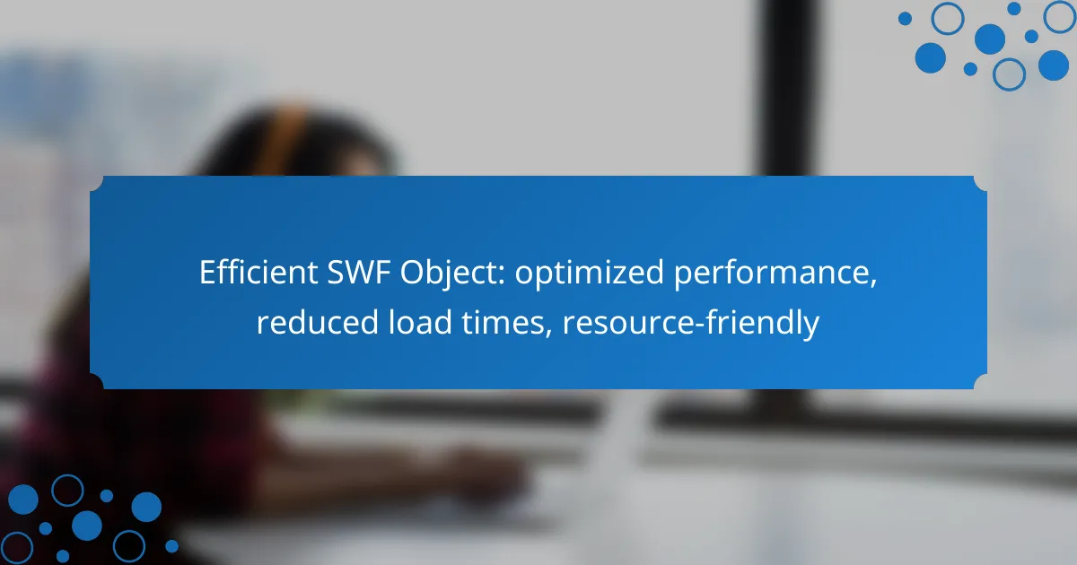 Efficient SWF objects are designed to enhance performance by optimizing load times and minimizing resource consumption. By focusing on streamlined content and effective coding practices, developers can create applications that not only run faster but also provide a smoother user experience. Implementing optimization tools and techniques can significantly improve the overall efficiency of SWF files.